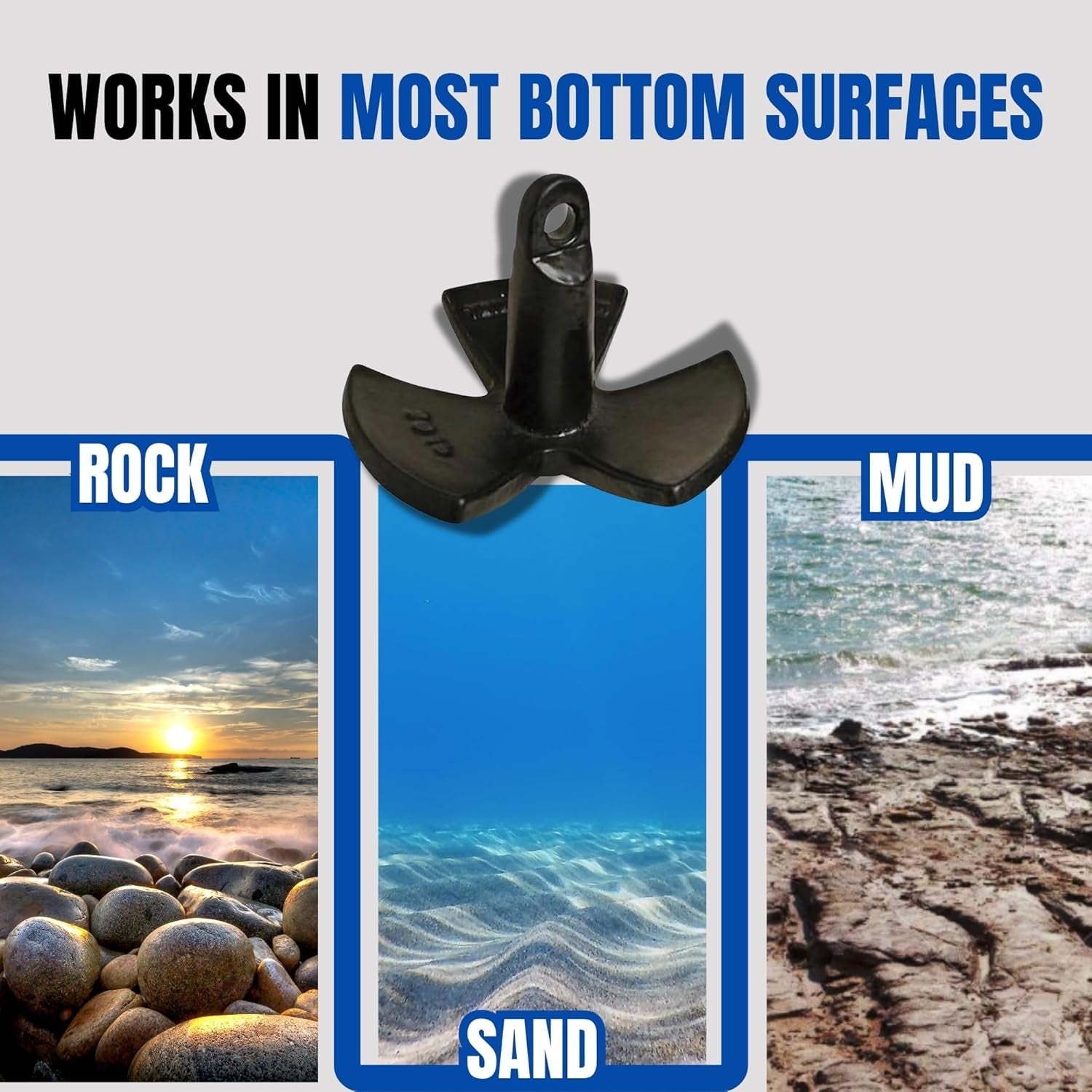 Choose the Right Size for Your Boat – Available in 8 lb (Ideal for Kayaks, Canoes, Dingies, Jet Skis, & Small Boats), 10 lb (boats up to 15 ft), 12 lb (up to 18 ft), 15 lb (up to 20 ft), 18 lb (up to 22 ft), 20 lb (up to 24 ft), and 30 lb (up to 30 ft); pick the best fit for optimal holding power.