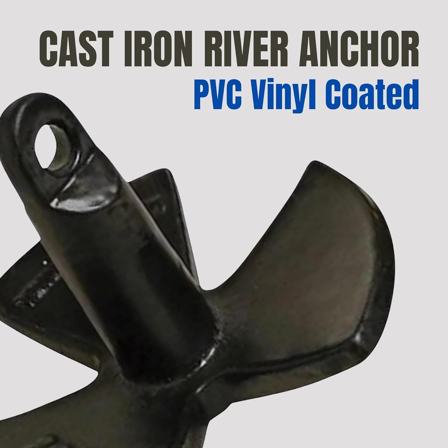 Black PVC Vinyl Coated River Anchor | Durable Scratch-Resistant Finish | Secure Hold in Mud, Sand & Gravel | Available in 8–30 Lb for Small to Large Boats