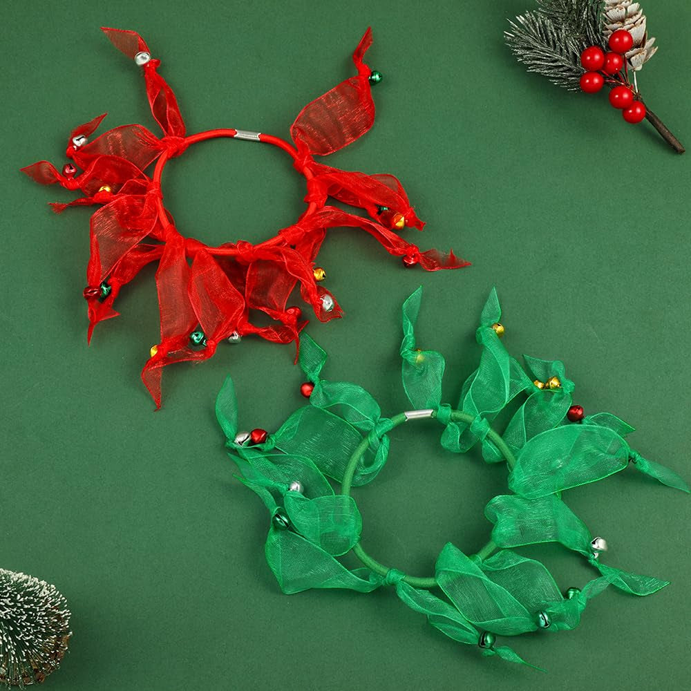 Christmas Hair Ties Scrunchies | 2 Pcs Holiday Scrunchies for Women | Green and Red Transparent with Jingle Bell | Elastic Hair Accessories for Women