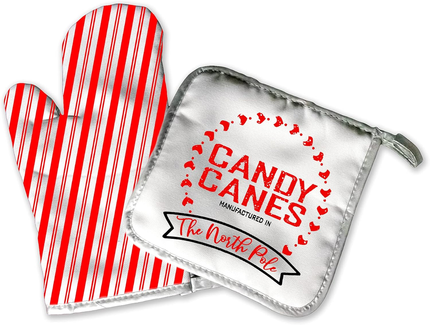 Christmas Home Decoration | Kitchen Decor | Candy Cane Stripes | Oven Mitt Pot Holder | Old Fashion XMAS | Rustic Holiday Accents | Christma Gift Santa Reindeer Elf Grandma Clause (Candy Canes)