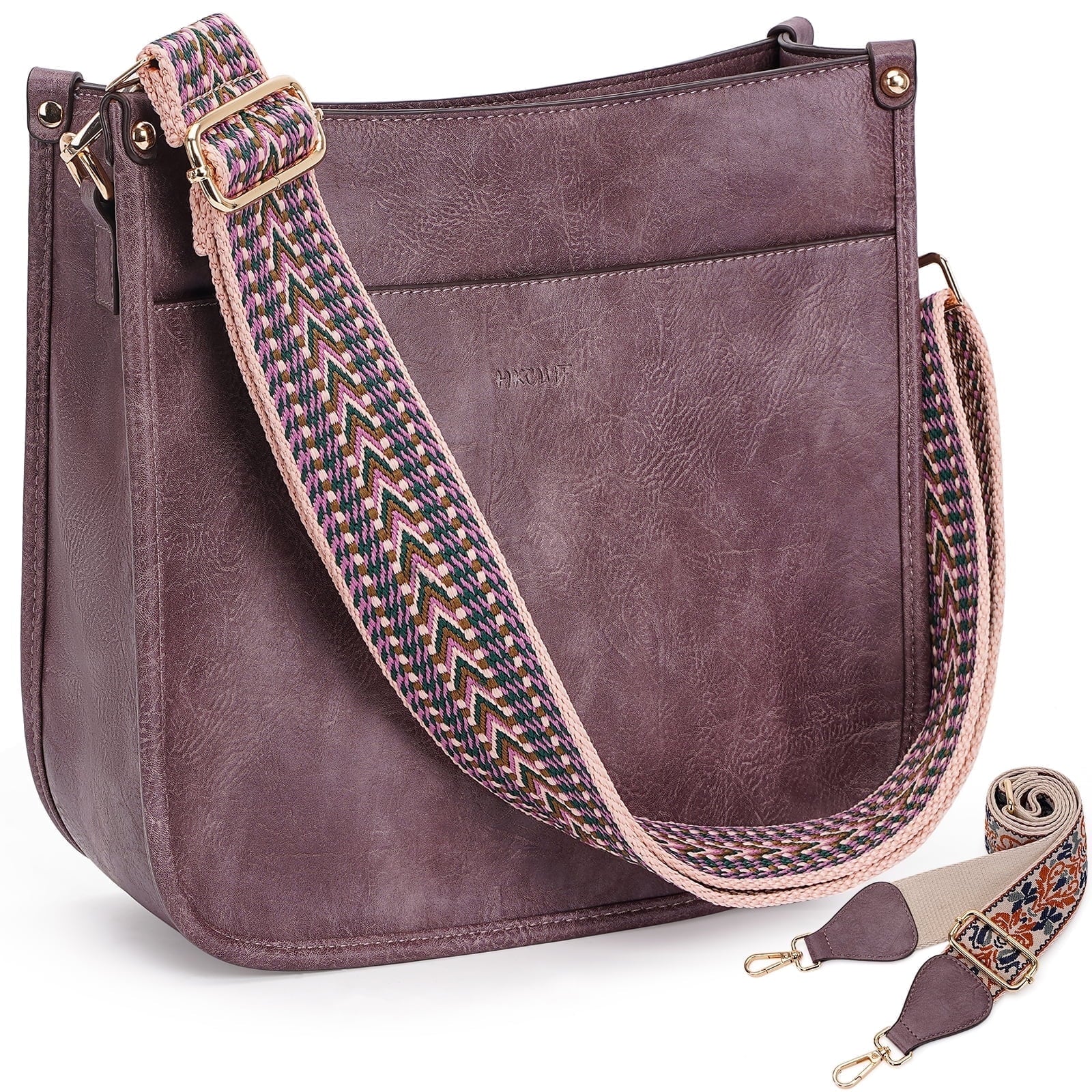 Herringbone pattern+colorful 2-inch double shoulder strap retro single shoulder crossbody bag for women 2 shoulder straps - purple.This crossbody bag for women is made of premium vegan leather, fabric lining and high quality gold hardware designed.come with metal zipper closure,main pocket and back pocket anti-theft zipper design.double antitheft to protect your property safety.also without any weird smell.leather is durable and easy to clean.simply just wipe with water to keep this bucket bag looking new,and durability.Best gifts for girlfriend, wife, mother, and friend.Available multiple retro colors, this lovely bag will become your new favorite accessory!Simple design, Hobo style, You deserve it!