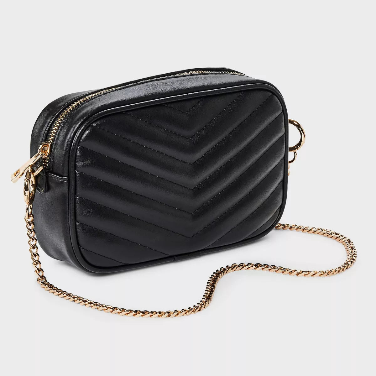 Add a simple yet stunning piece to your bag collection with the Elevated Camera Crossbody Bag from A New Day™. This camera bag is designed with an interior pocket to help keep cards and other items separate. Made of faux leather, this softside crossbody bag has a chain strap handle for easy carrying.